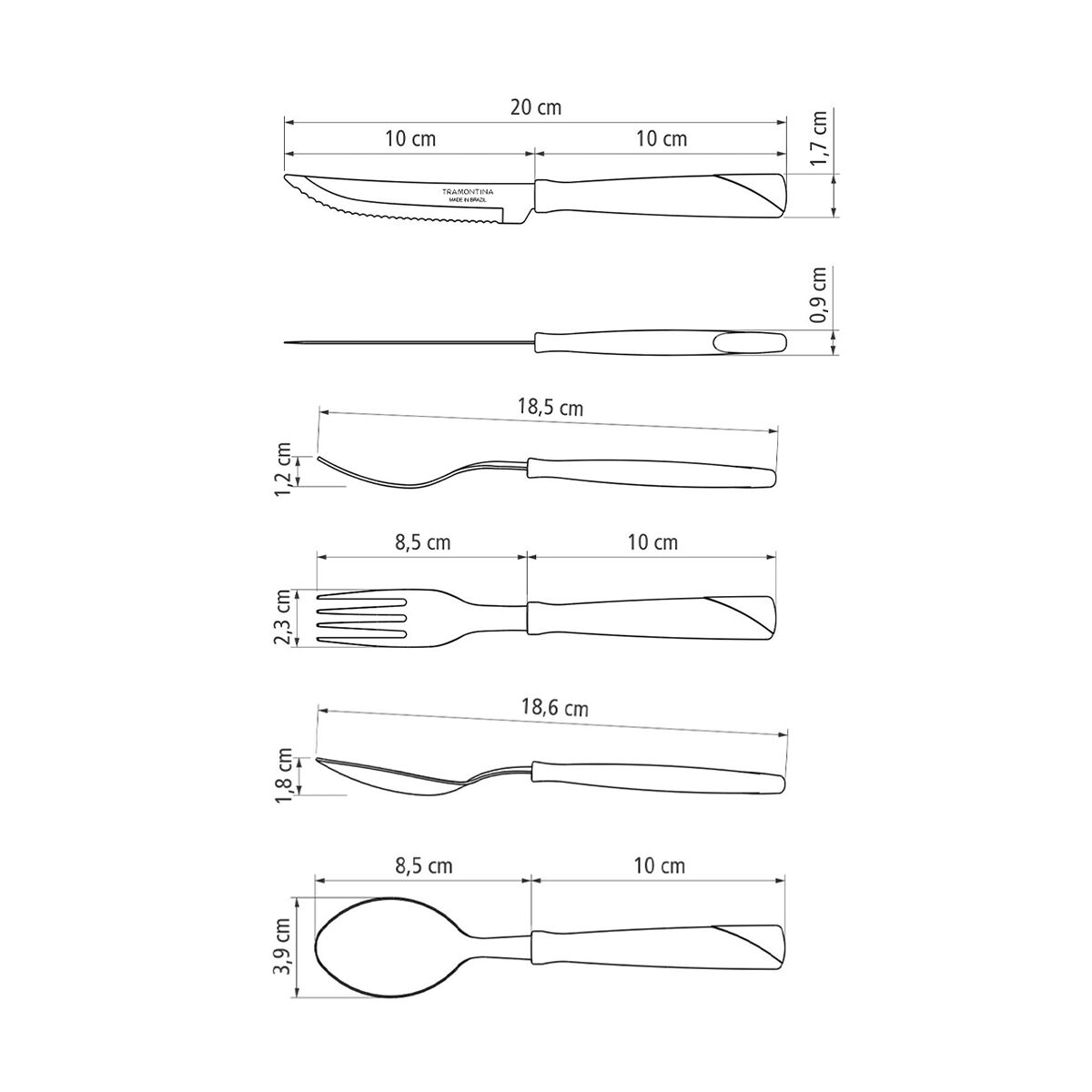 Faqueiro Tramontina New Kolor com Lâminas em Aço Inox e Cabos de Polipropileno Preto 3 Peças ...