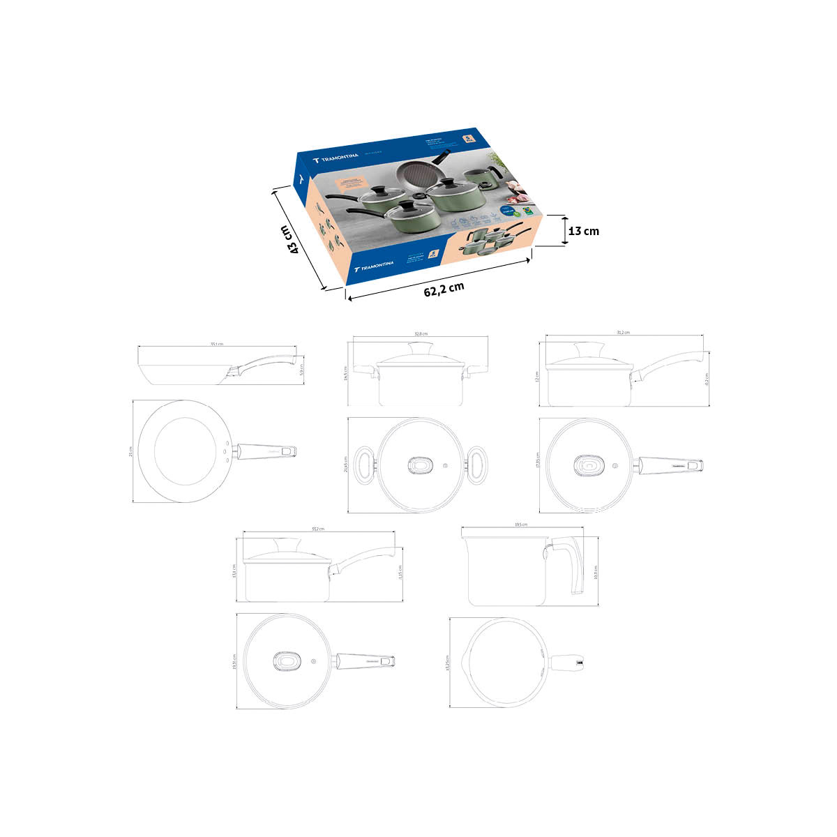 Jogo de Panelas Tramontina Michigan em Alumínio com Revestimento Interno e Externo Antiaderente Starflon Max Verde Oliva 5 Peças