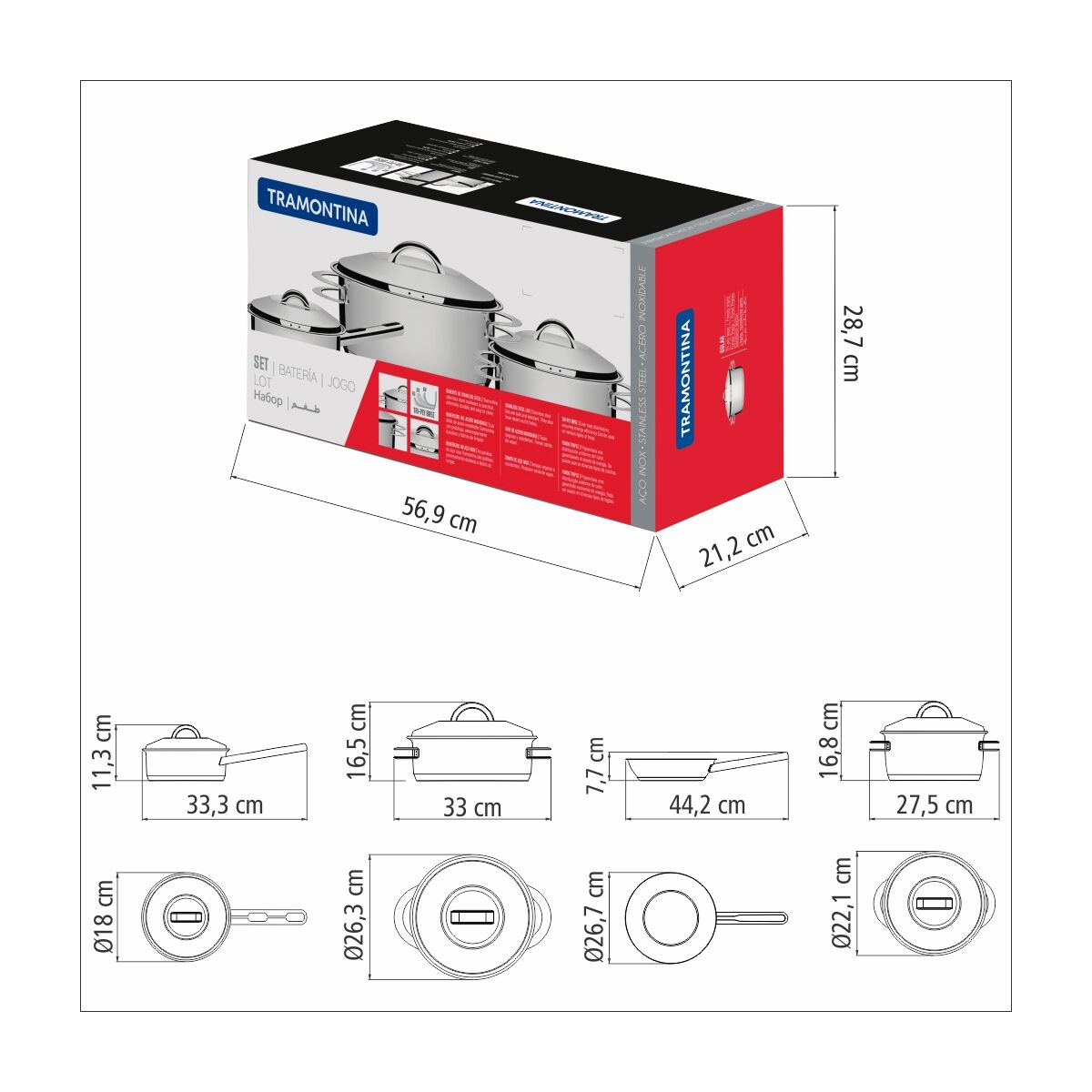 Jogo de Panelas Tramontina Solar em Aço Inox com Fundo Triplo 4 PeçasO design clean da linha Solar foi criado para tornar mais simples as tarefas de forno e fogão. O Jogo de Panelas Tramontina Solar em Aço ... Ver mais detalhes