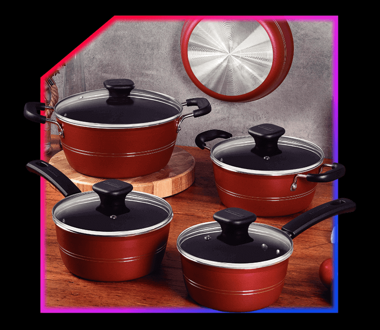 Jogo de Panelas Tramontina Sicília em Alumínio com Revestimento Interno e Externo Antiaderente Starflon Excellent Vermelho 5 Peças