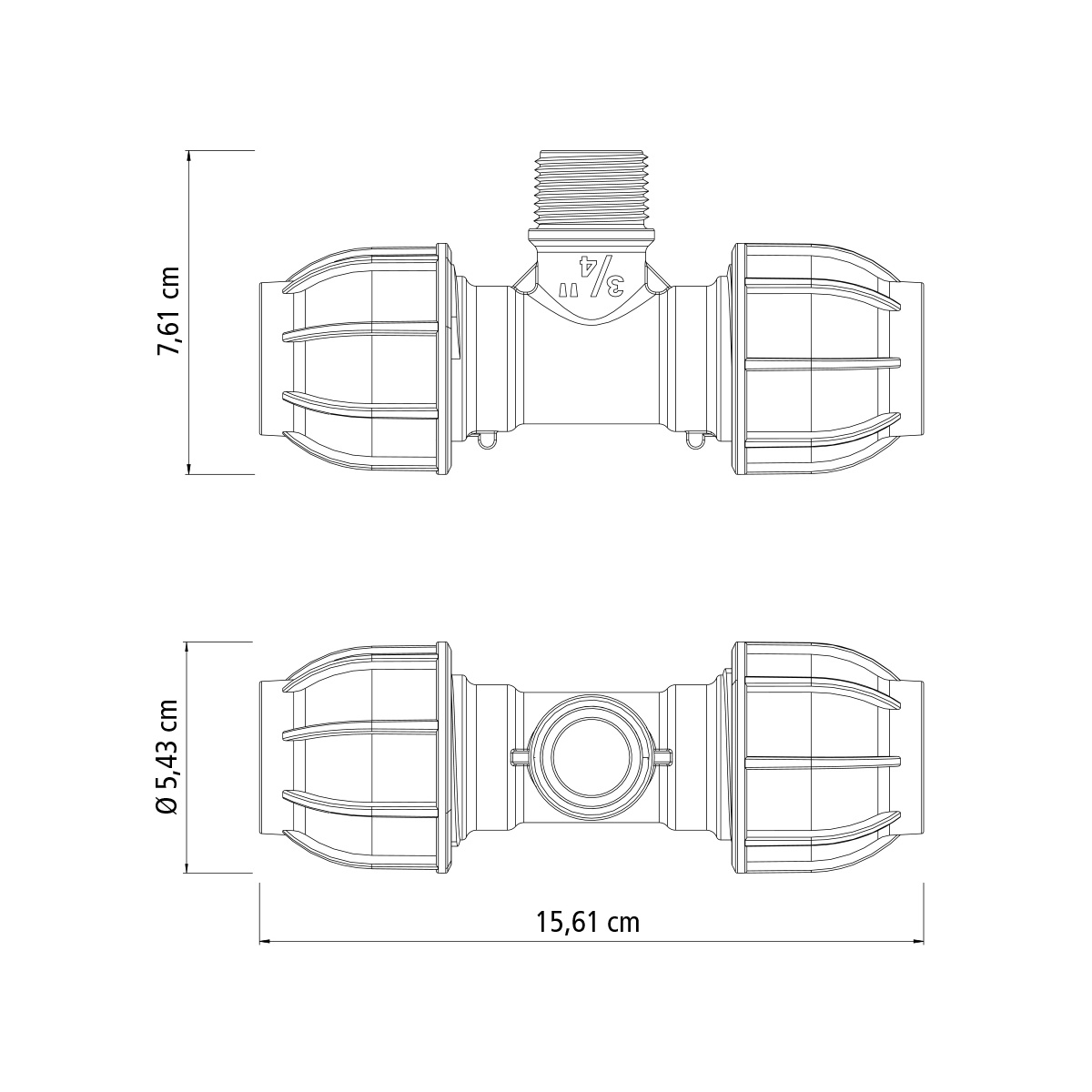 Tê 90° de Compressão Rosca Macho 25 mm x 3/4" Tramontina para Mangueiras de PEAD